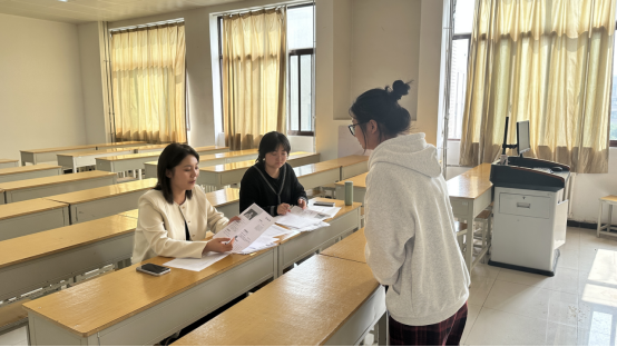 在提问环节,评委们认真负责地对每位同学提出针对性问题,就面试者的就业意向、对就职岗位的认识及个人目标的规划,进行了更为详细的询问。即锻炼了同学们的应答和临场反应能力,也能身临其境的感受到职场面试的压力。