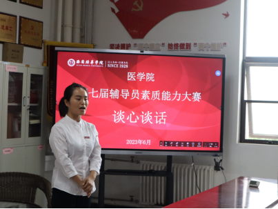 本次环节邀请了医学院党委书记王平安、党委副书记何丽、陕西省第八届辅导员素质能力大赛一等奖获得者崔菲老师担任评委,罗海芸老师担任主持人。