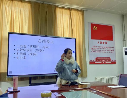 王青老师从自身分享,首先强调选题的重要性,做到具体,贴合实际。其次介绍教学设计要完整,内容相互衔接。此外,新手参赛者,制定台本可以更好地把控时间,自信从容。