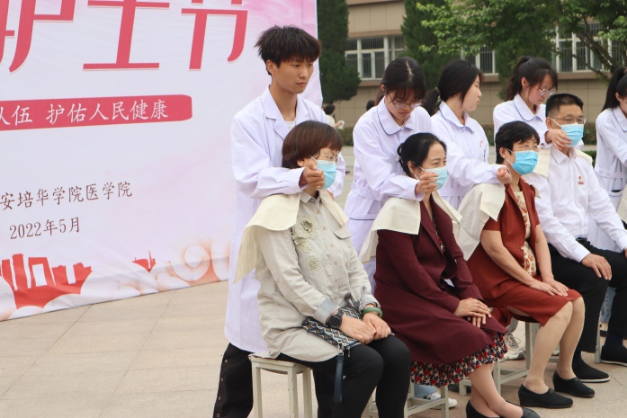 首先,由原玮老师由国家高级康复理疗师、国家一级讲师、针灸推拿专家原玮老师进行常见疾病预防知识宣讲,他呼吁在场师生多多运动,尽量不要久坐办公室,注意自身饮食健康。其次,中医按摩团队为现场师生进行肩颈按摩,通过按摩可以放松肌肉,缓解疲劳同时缓解了肌肉的痉挛,预防了颈椎病的发作。通过按摩还使颈椎的生理曲度恢复一部分,从而防止发生颈椎的生理曲度变直反弓等一系列的现象。