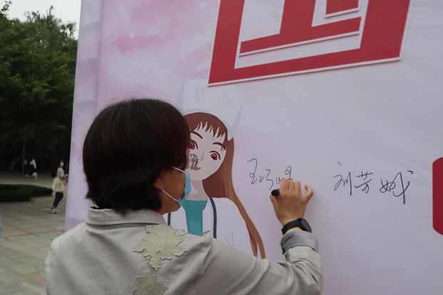 国际护士节为每年的5月12日,是国际护士理事会为纪念现代护理学科的创始人弗洛伦斯·南丁格尔于1912年设立的节日。基本宗旨是倡导、继承和弘扬南丁格尔不畏艰险、甘于奉献、救死扶伤、勇于献身的人道主义精神。为纪念第111个“5.12”国际护士节,我院于5.12日在综合楼西广场,举办了关爱护士队伍,护佑人民健康主题活动。