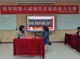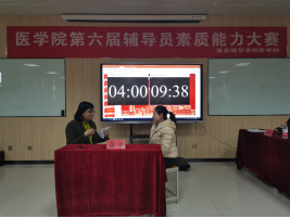 2021年是中国共产党成立100周年,也是“十四五”规划开局之年,为全面贯彻党的教育方针,习近平新时代中国特色社会主义、全国高校思想政治会议精神、落实立德树人根本任务,进一步推动辅导员队伍专业化、职业化建设,我院于2021年3月30至3月31日在8227举办第六届辅导员职业技能大赛初赛,担任此次比赛的评委医学院党委书记行政副院长王平安、医学院党委副书记何丽、学生服务中心干事董莹、学业导师胡晓佳。