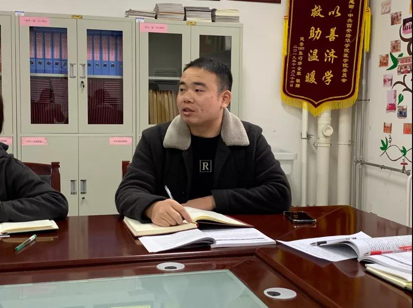 为深入贯彻落实《西安培华学院“姜维之班”创建方案》文件精神,深化医学院大学生思想政治教育效果,充分发挥“增强班级凝聚力、激发学习创造力、强化班团思想引领力”作用,逐步形成“气象新、班风正、学风浓、院风好”的良好局面。我院于11月18日8:30分在至善楼8330室召开了【“医”起来学习】第七期:西安培华学院“姜维之班”创建方案辅导员专题学习会议,参会人员有医学院党委书记兼行政副院长王平安、党委副书记何丽及全体辅导员。