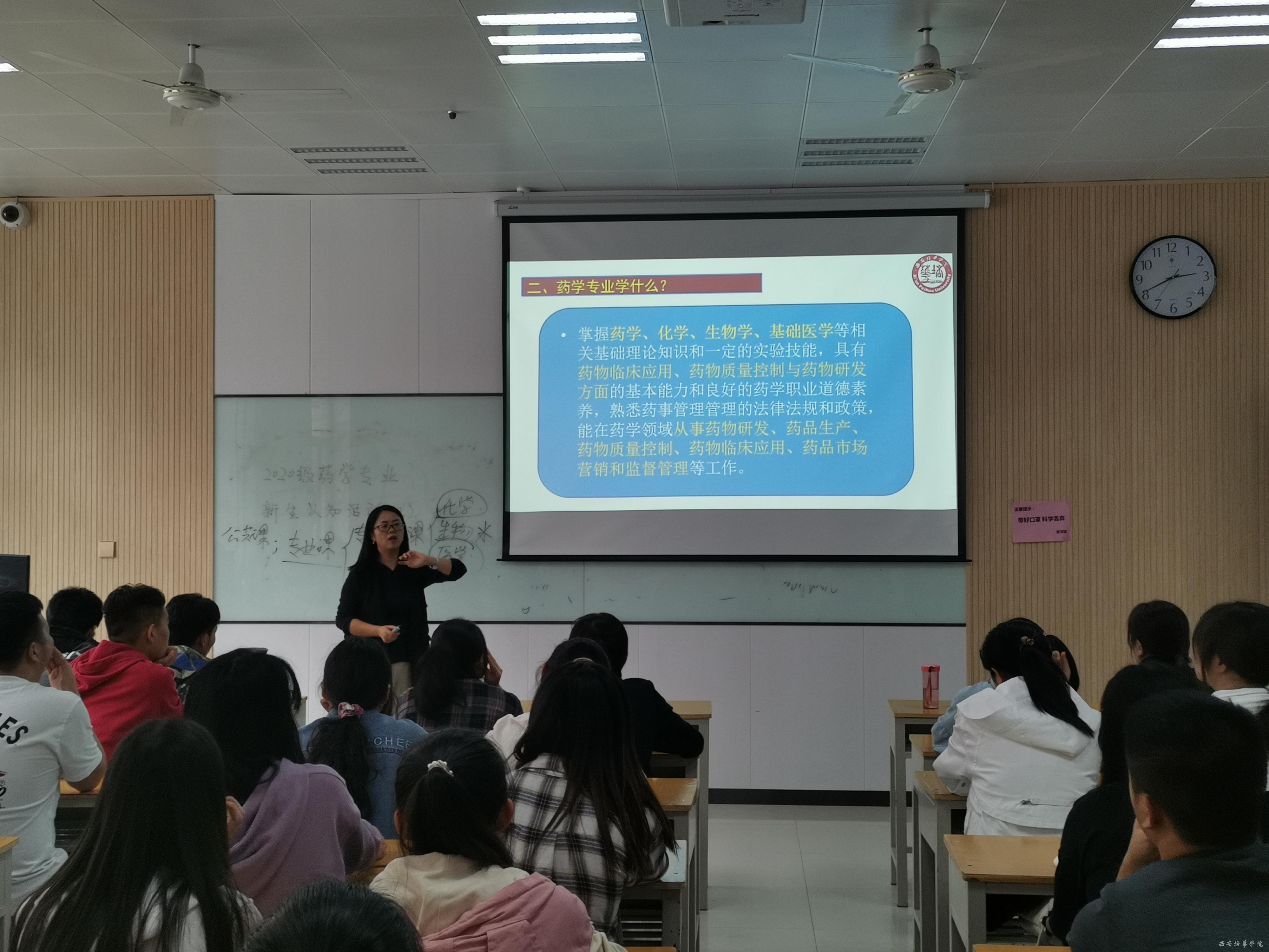 2020年9月28日-30日,医学院药学系开展了新生专业认系列知活,邀请国家食品药品监督管理总局特聘执业药师工作专家、陕西省执业药师协会理事陈有亮教授,药学专业优秀学子:陕西中医药大学讲师张珍和西安赛尔美生物科技公司总经理李闯,在8304如期举行了“2020-2021-1学期新生专业认知活动”学术报告会和新生汇报交流会。药学系副主任方欢乐、药学专业的老师和2020级药学新生参加了此次报告会。
