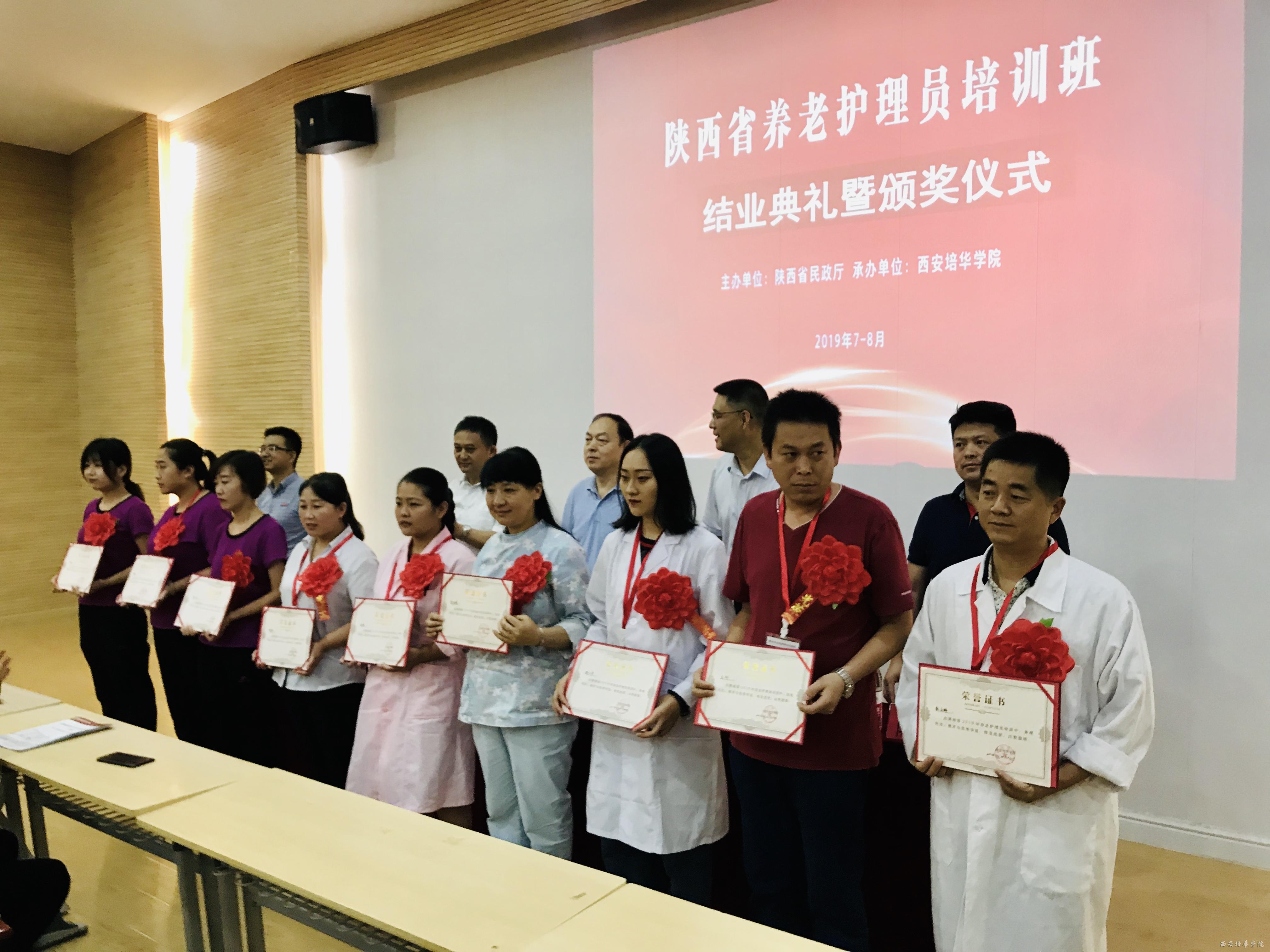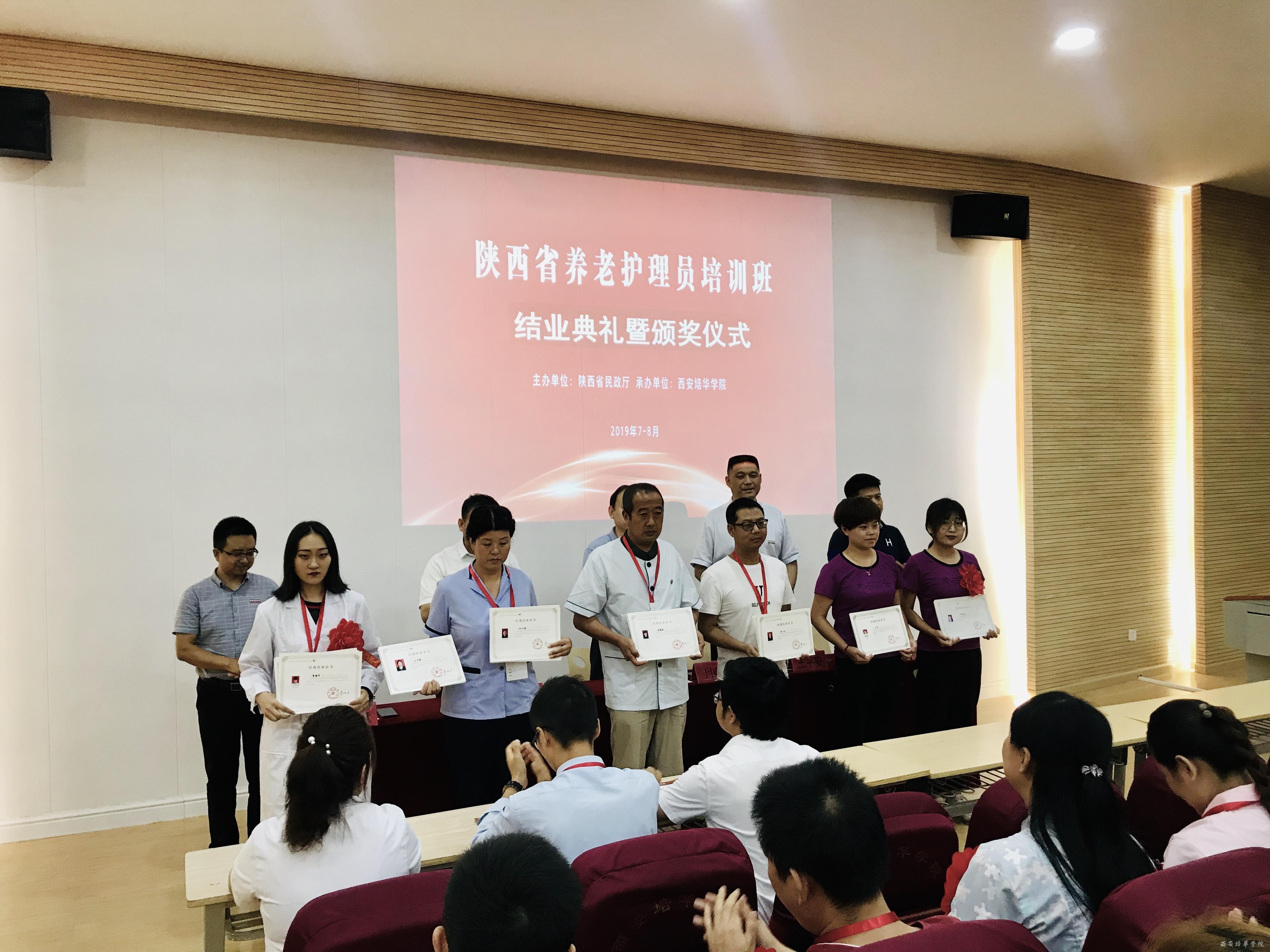 7月17日,由陕西省民政厅主办、西安培华学院承办的陕西省2019年初级养老护理员培训(第一期)顺利结业,结业典礼在培华学院博远楼J201报告厅举行。西安培华学院副校长、医学院院长于国亮,医学院副院长陈雷、党委书记姚斌,医学院基础系刘利兵教授及相关教师,以及来自省内各地市100名从事养老护理服务工作的护理人员参加了典礼。医学院常务副院长王平安主持结业典礼。