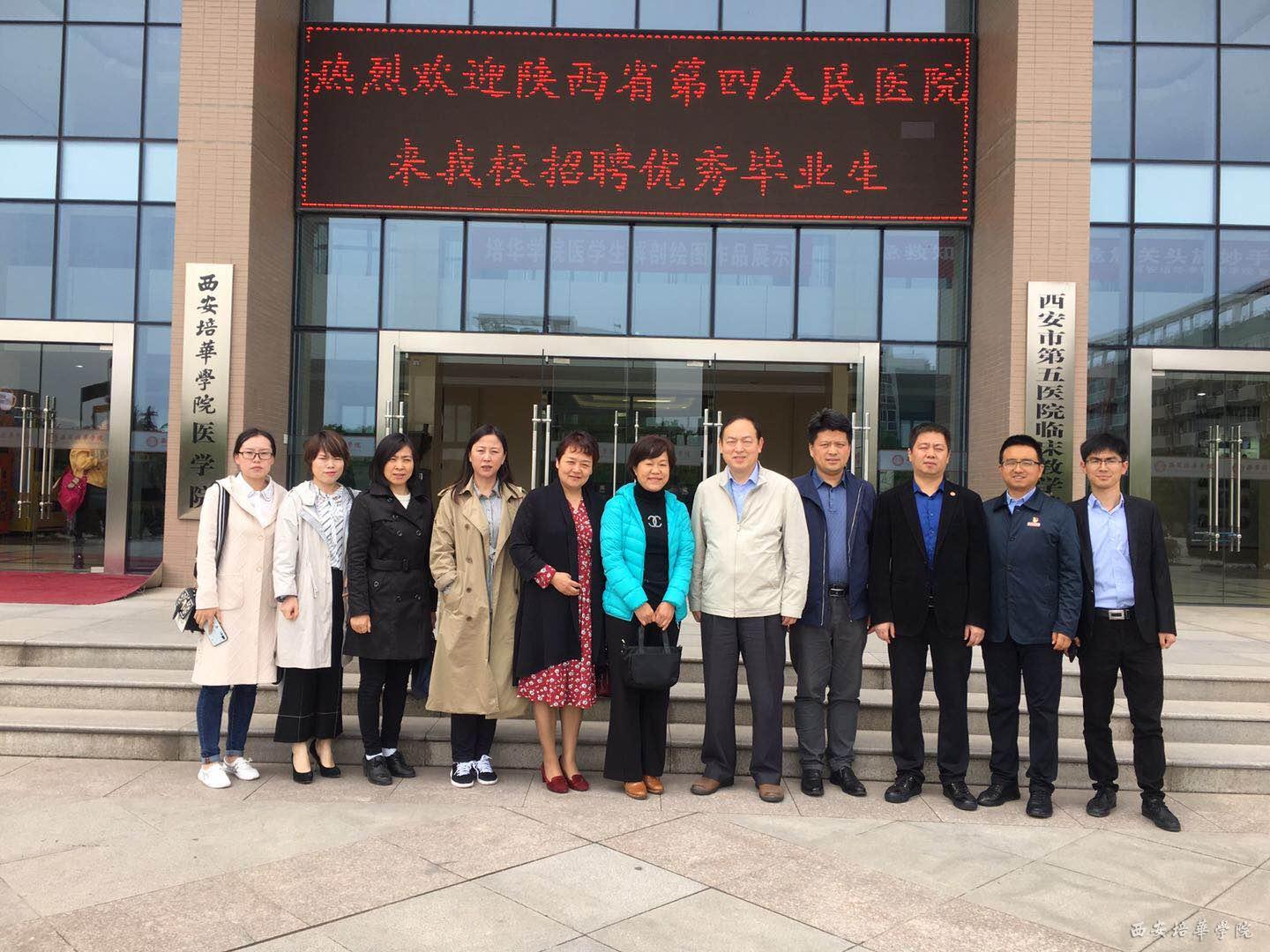 2019年4月29日,陕西省第四人民医院行政副院长刘彦君、护理部主任袁艳琦、人事科科长郭静、护士长邹湘君等一行六人来我校选拔招聘优秀毕业生,五十多名护理学本科同学参加此次应聘。我校副校长、医学院院长于国亮教授,校医院院长李旭军,招生就业指导中心副主任王琳,副院长陈雷,医学院党委书记、行政副院长姚斌,护理系主任化前珍教授以及相关教师等进行了热情接待。