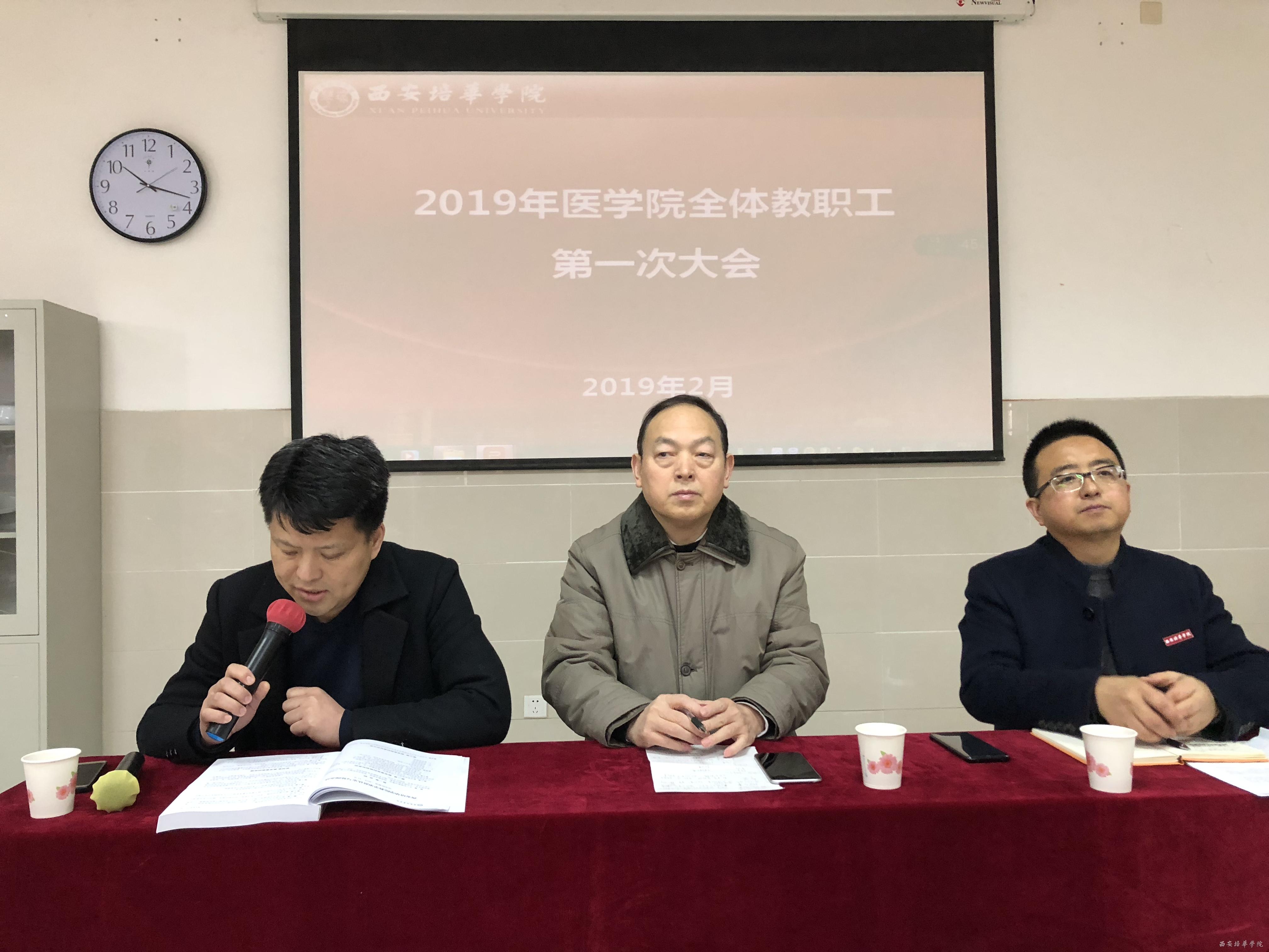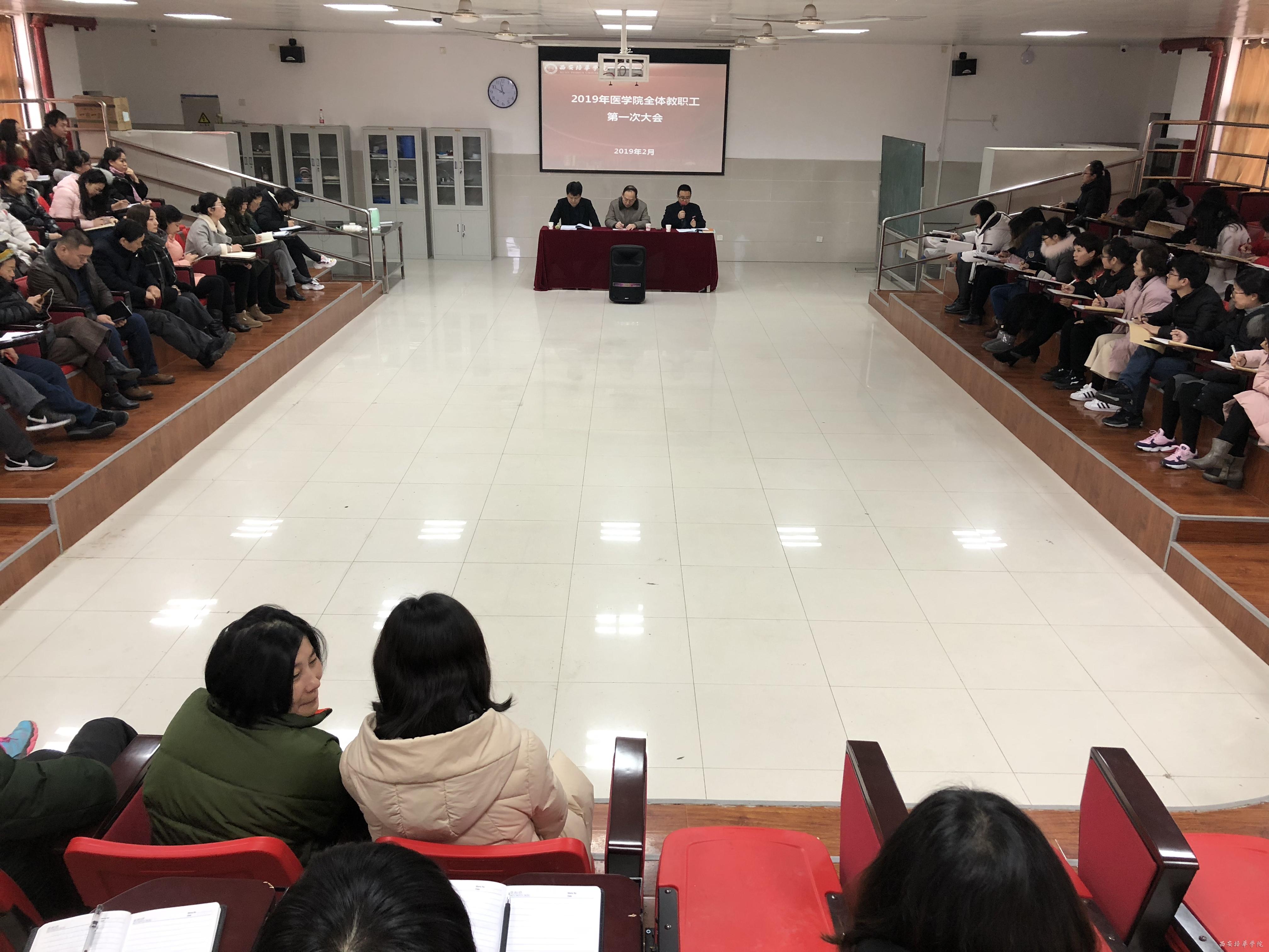学期伊始,万象更新,为了本学期各项工作的顺利开展,明确学院新学期的任务和工作要点,2019年2月22日上午10点, 医学院于至善楼8227 召开了第一次全体教职工大会。副校长、医学院院长于国亮教授,医学院副院长陈雷博士,医学院党总支书记、行政副院长姚斌老师,各系所专家教授、全体教师、辅导员及学生导师参加会议。会议由陈雷副院长主持。