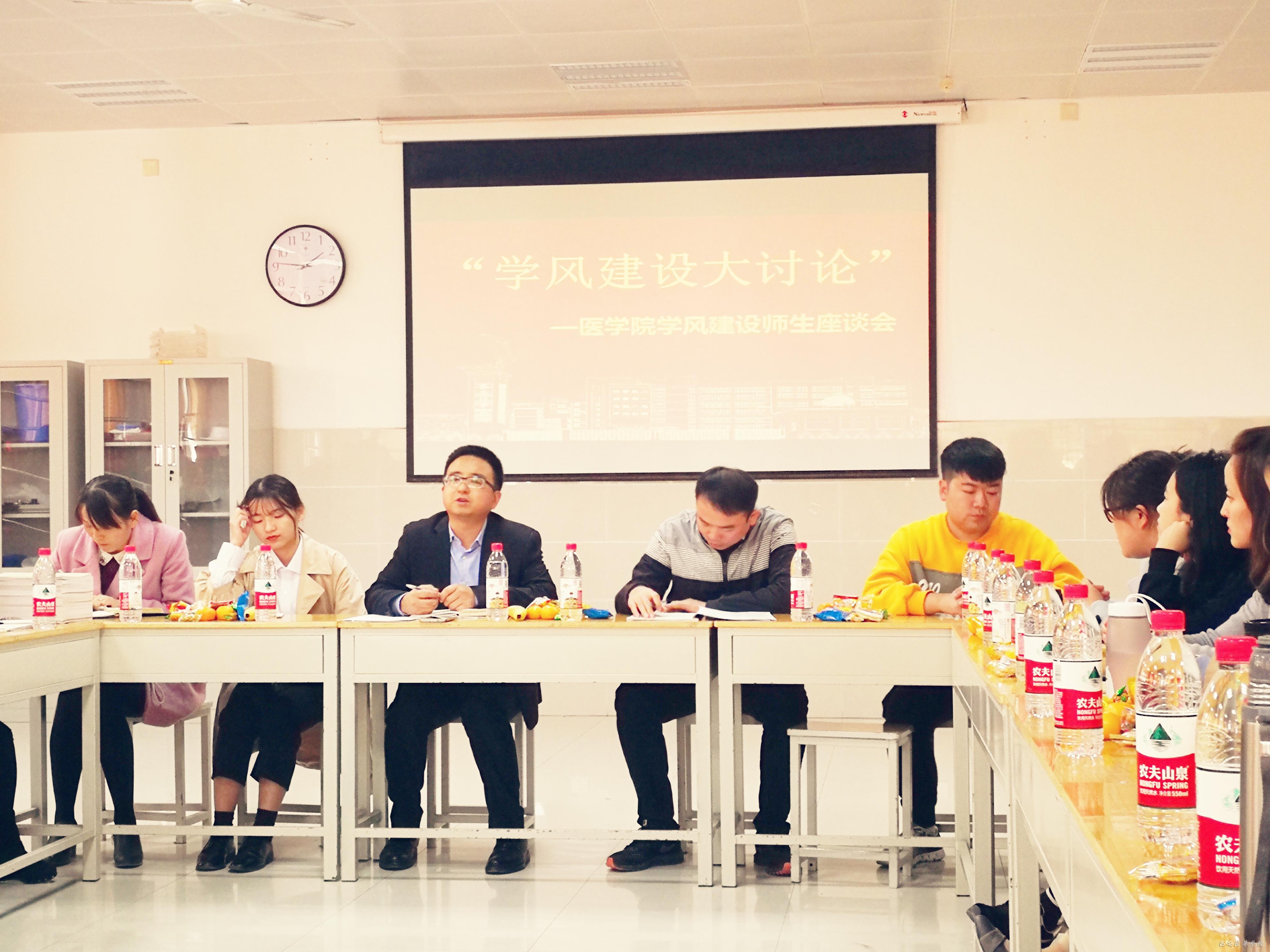 学风是大学精神的集中体现,是教书育人的本质要求,是高校立命之本和发展之魂。为进一步深入落实党的十九大精神和习近平总书记系列讲话精神,围绕“人才培养质量和效果”这一高校人才培养根本标准,深化教育教学改革,加快推进“四个回归”,营造良好的育人环境和学习氛围,不断提高我院人才培养质量。我院于10月26日下午14:00在8227召开了医学院学风建设师生座谈会,相关领导和教师参加了座谈会。