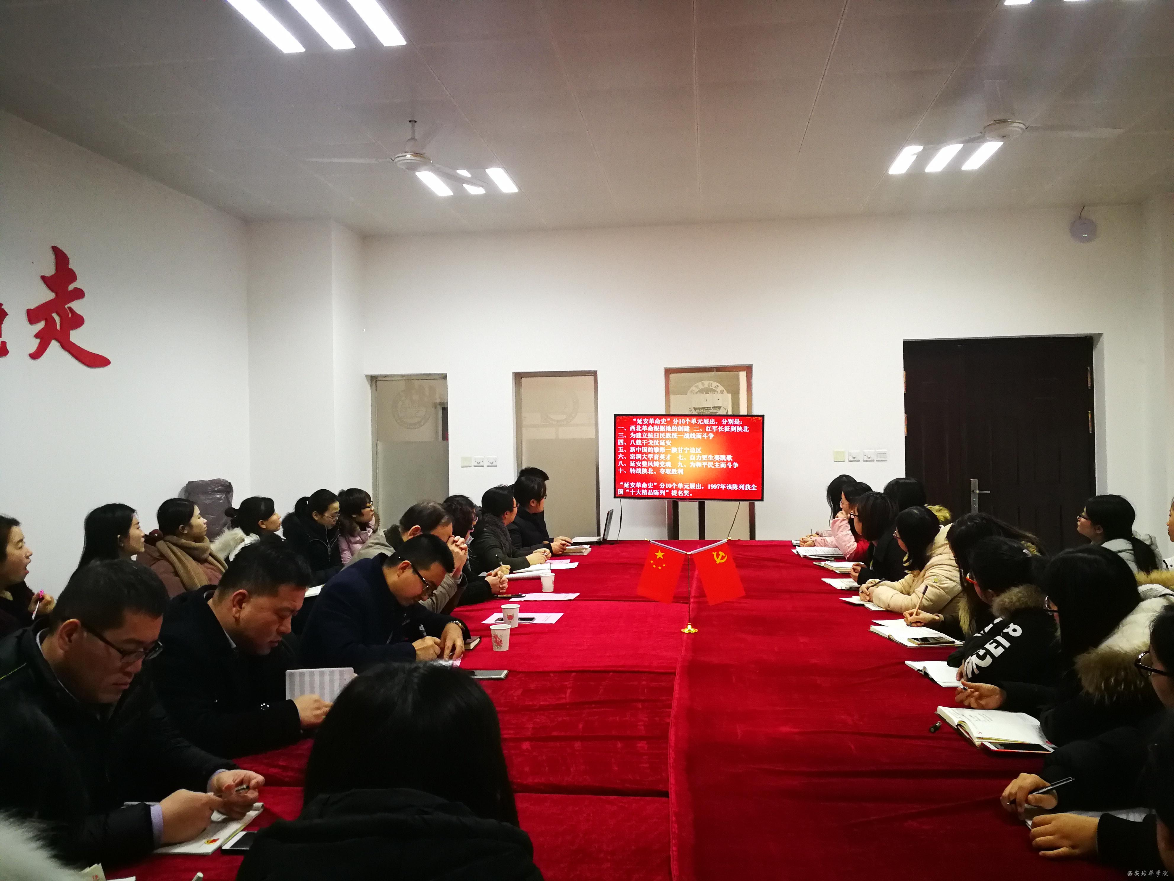 为深入贯彻落实党的十九大精神,中共西安培华学院医学院总支部委员会于12月14日下午四时在医学院党员活动室召开了以“学习延安精神,矢志砥砺前行”为主题的中心组(扩大)会议。参加本次会议的有:副校长、医学院院长于国亮,校党委委员、教务管理中心主任唐学学,医学院党总支书记姚斌,党总支委员,各支部书记、委员及教工党员、学生党员代表四十人。会议由医学院党总支书记姚斌主持。