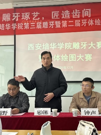 系主任越野副教授在致辞中指出牙体雕刻是修复体制作的基石,直接关乎功能与形态的精确再现;而牙体绘图则是理解形态、传递设计构思的关键环节。本次大赛不仅是对课程教学效果的一次集中检阅,更是引导学生从“知道”到“做到”、从“模仿”到“创造”的进阶训练。