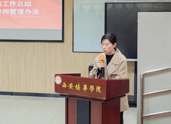 会议第四项由优秀学业导师张露分享指导经验。张老师作为校级优秀学业导师,声情并茂地分享了自己在指导医学检验技术专业2401班中通过分层备考四六级、多维提升“六率”、创新专业教学及前瞻职业规划的特色学业指导做法,助力学生全面发展。他表示学业导师不仅是学生学业上的 “指导者”,更是学生生活中的“陪伴者”和人生路上的“领航者”,我们要以专业引领为帆,以悉心指导为桨,助力学子校准志向坐标,在人生赛道上以梦为马驰万里,携志作帆破千浪。