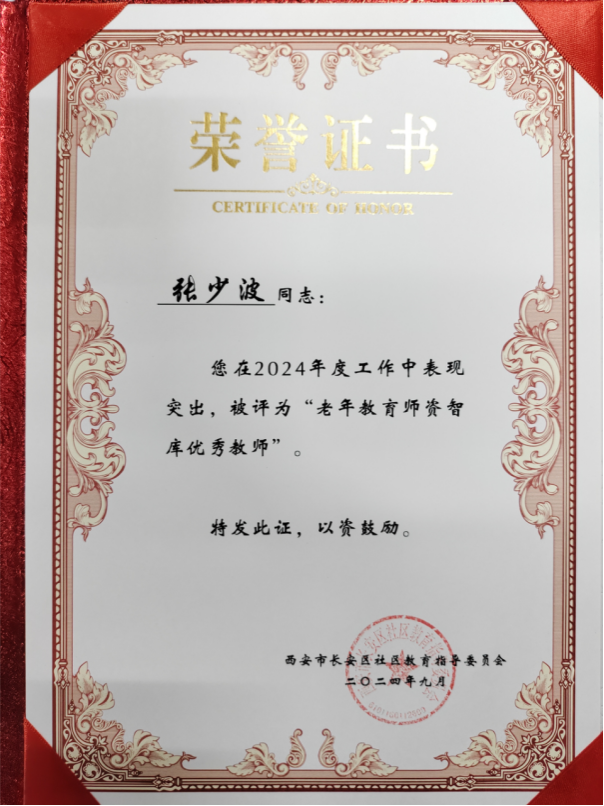 喜报//张少波老师入选第五届西安市老年教育师资智库,荣获长安区老年师资智库优秀教师称号