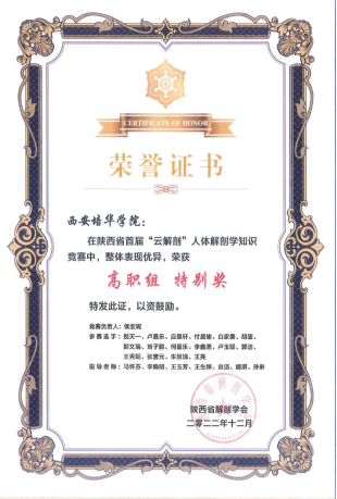 本科组陕西省首届“国希望云解剖”知识竞赛获奖证书