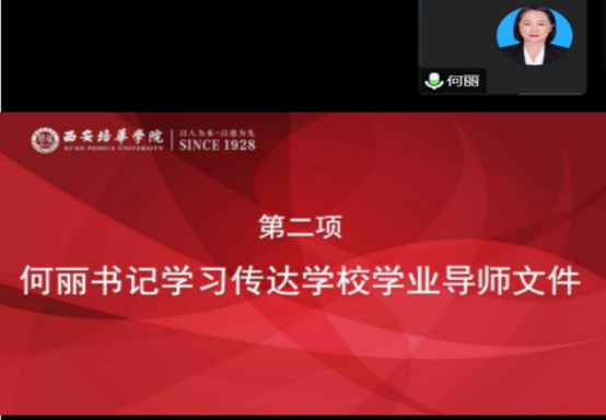 其次,何丽副书记学习传达《西安培华学院学业导师管理办法》,重点学习了学业导师的岗位职责,并详尽阐述了学业导师工作量化考核标准。