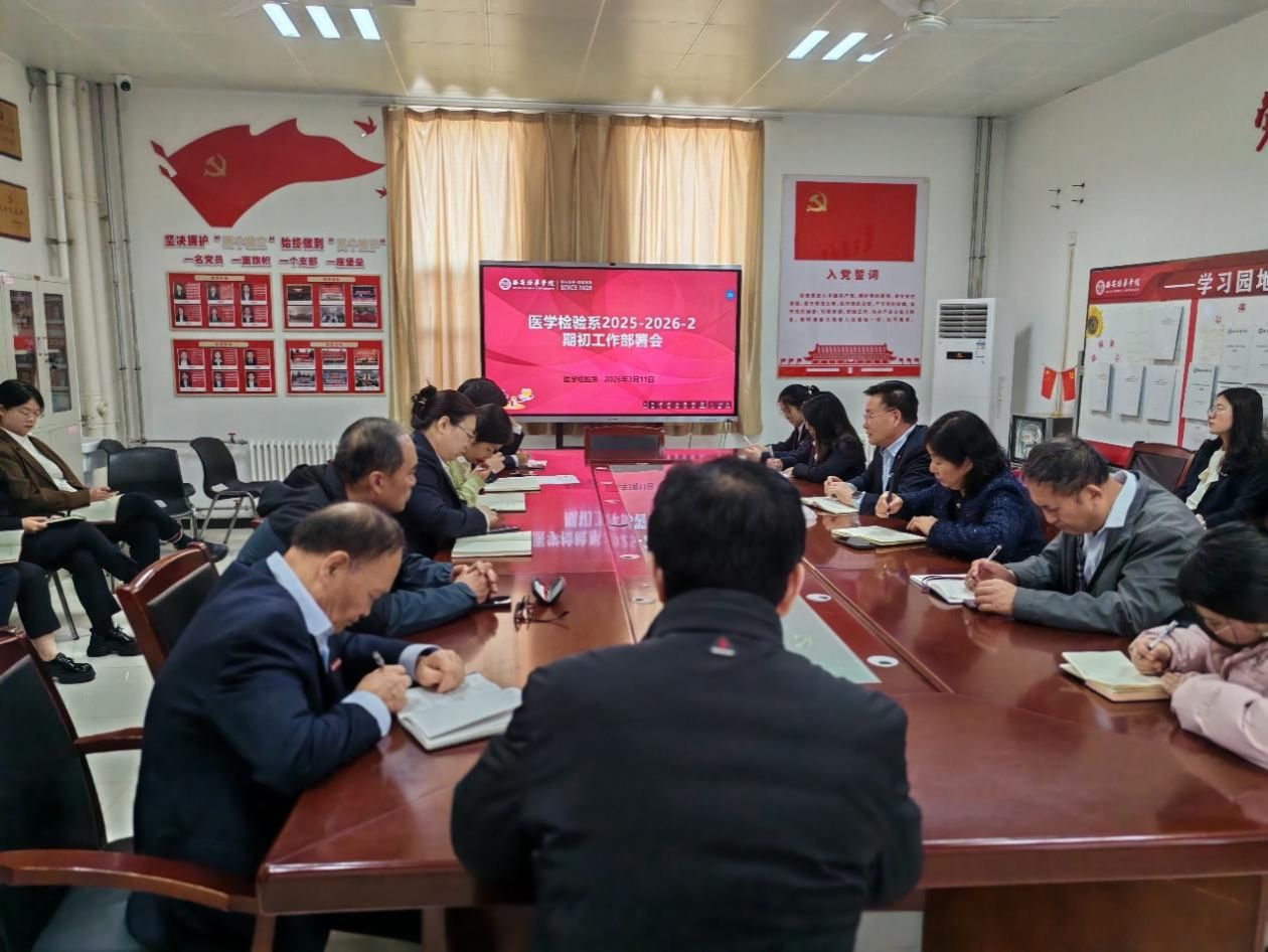 为明确新学期工作方向,统筹推进教学、科研等核心任务,凝聚全系育人合力。医学检验系2025-2026-2学期初工作部署会于3月11日下午在至善楼8330会议室召开。医学检验系专业带头人赵亚教授、主任苏明权教授、副主任毕芳芳副教授、副主任张露副教授及全体教职工参会,会议由毕芳芳副教授主持。