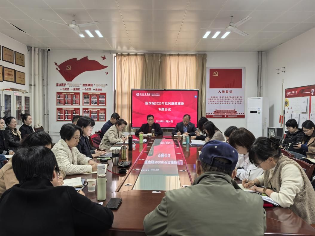 为持续深入学习贯彻党的二十大精神,系统总结年度党建工作,科学谋划下一阶段重点任务,推动基层党组织全面进步、全面过硬,医学院党委于2025年11月24日在8330会议室召开医学院党建高质量发展暨党风廉政工作会议学院领导班子成员、各系部主任、教研室负责人、全体党支部书记及支部委员参加培训。会议由学院党委书记兼行政副院长史立军主持。