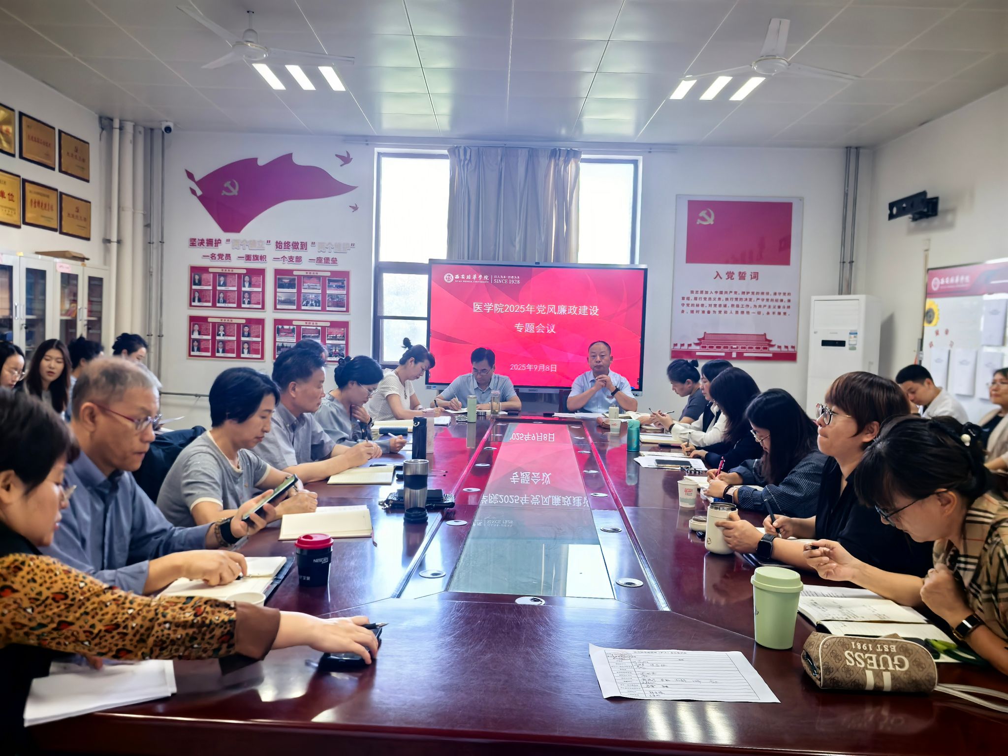 为持续深化全面从严治党,筑牢党员干部拒腐防变的思想道德防线,以案为鉴、警钟长鸣,2025年9月8日,医学院党委在至善楼8330党员活动室组织召开下半年党风廉政警示教育专题会议。学院党委书记兼行政副院长史立军、党委副书记何丽、全体党委委员、各党支部书记及教师党员代表参加会议。会议由史立军同志主持。