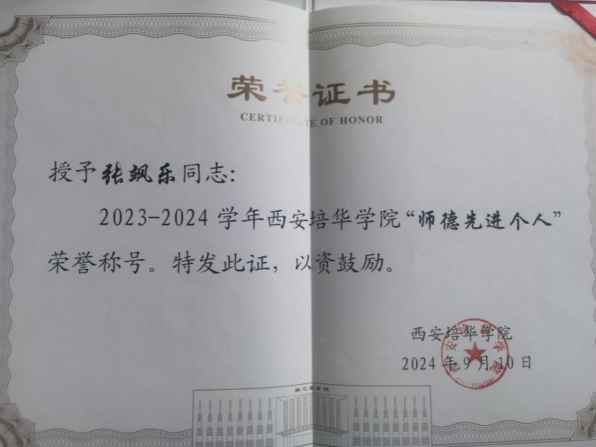 张飒乐同志,曾荣获省级“三下乡”社会实践活动“先进个人”,多次荣获校级“师德先进”、“优秀教师”、“科研先进工作者”、“优秀共产党员”、学生毕业“优秀指导老师”、青年教师双导师制工作“优秀指导老师”、“年终先进工作者”等称号;荣获青年教师讲课大赛二等奖等荣誉称号。