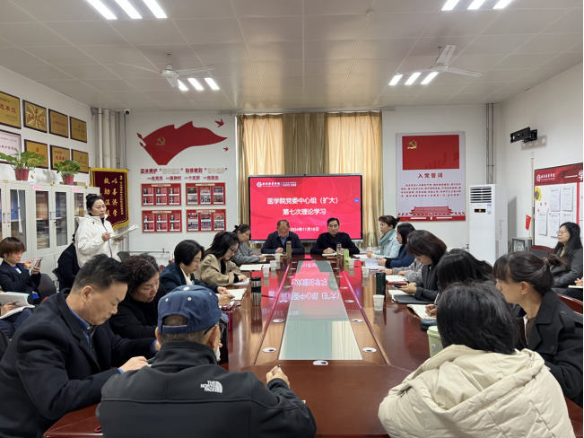 2024年11月18日上午,医学院党委在至善楼8330党员活动室召开了2024年第七次理论学习中心组(扩大)会议。医学院院长扈国栋、党委书记兼行政副院长史立军、教学副院长王菊宁、科研副院长别蓓蓓和学院党委委员、各党支部书记、副书记 参加了学习,会议由党委书记兼行政副院长史立军同志主持。