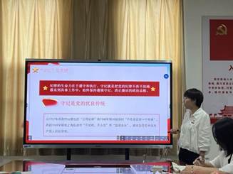 为全面贯彻落实党的二十大精神,深入学习习近平总书记关于党纪学习教育的重要讲话精神,切实通过党纪学习教育,使党员干部筑牢理想信念根基、厚植爱党报国情怀,增强廉洁自律意识。医学院党委于2024年7月5日上午10:00在8330会议室举办“学纪于心、守纪于行”微党课比赛。医学院党委书记兼行政副院长史立军、党委副书记何丽、全体党支部书记、副书记、党务兼行政干事周阿萌参加活动,教工第一党支部牛睿老师出席并担任评委,会议由党委副书记何丽主持。