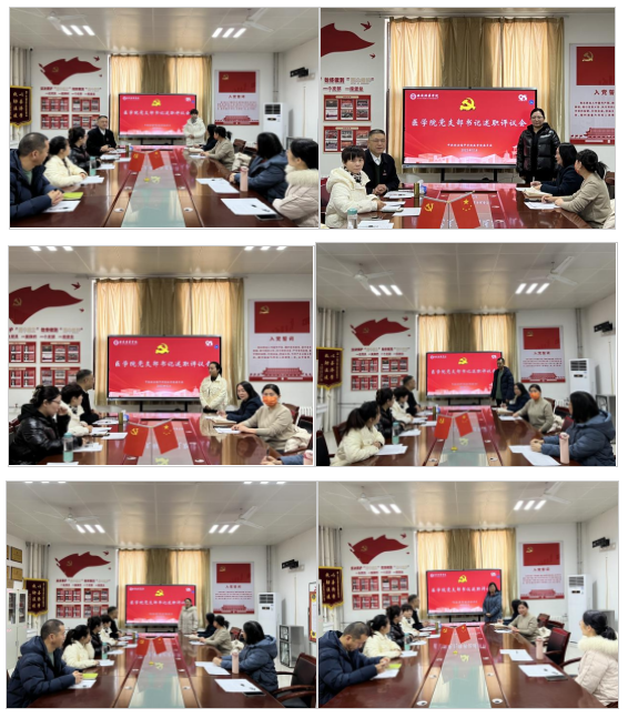 为深入学习贯彻习近平新时代中国特色社会主义思想和党的二十大精神,坚持和加强党的全面领导,增强党组织政治功能和组织功能,2023 年12月27日上午,医学院党委在8330会议室组织召开2023年度党支部书记党建述职评议会。学院党委书记兼行政副院长王平安、党委副书记何丽、党务干事周阿萌和各党支部书记参加会议。会议由医学院党委副书记何丽主持。