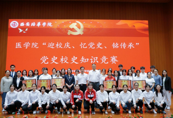 为深入开展学习贯彻习近平新时代中国特色社会主义思想主题教育,不断讲好中国共产党的故事,讲好培华故事,不断加强党史、校史的学习教育,增强师生的荣誉感和责任感。9月21日由医学院党委主办的第四届“迎校庆、忆校史、铭传承”党史校史知识竞赛在维之图书馆报告厅内顺利举办。医学院常务副院长扈国栋、党委书记兼行政副院长王平安、党委副书记何丽、党务兼行政干事周阿萌、党务专干冯贝、各党支部书记及全体党员、积极分子参加会议。本次会议由医学院李泽城和刘梦雪同学主持。