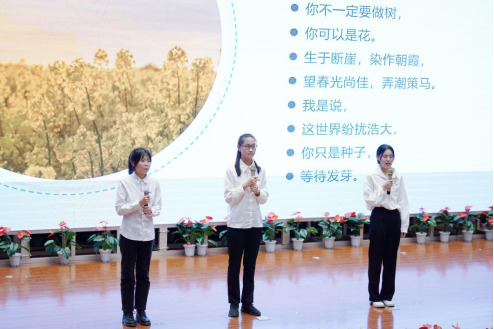 比赛开始前,全体起立齐唱《培华颂歌》,嘹亮的歌声响彻赛场。