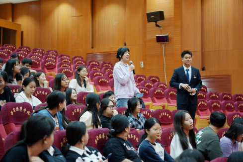 随后在观众互动环节中,主持人随机挑选幸运观众,提问有关党史校史的知识,回答正确即可获得小礼物。同学们热情高涨,积极参与,迅速准确地得出了答案,互动现场气氛活跃。
