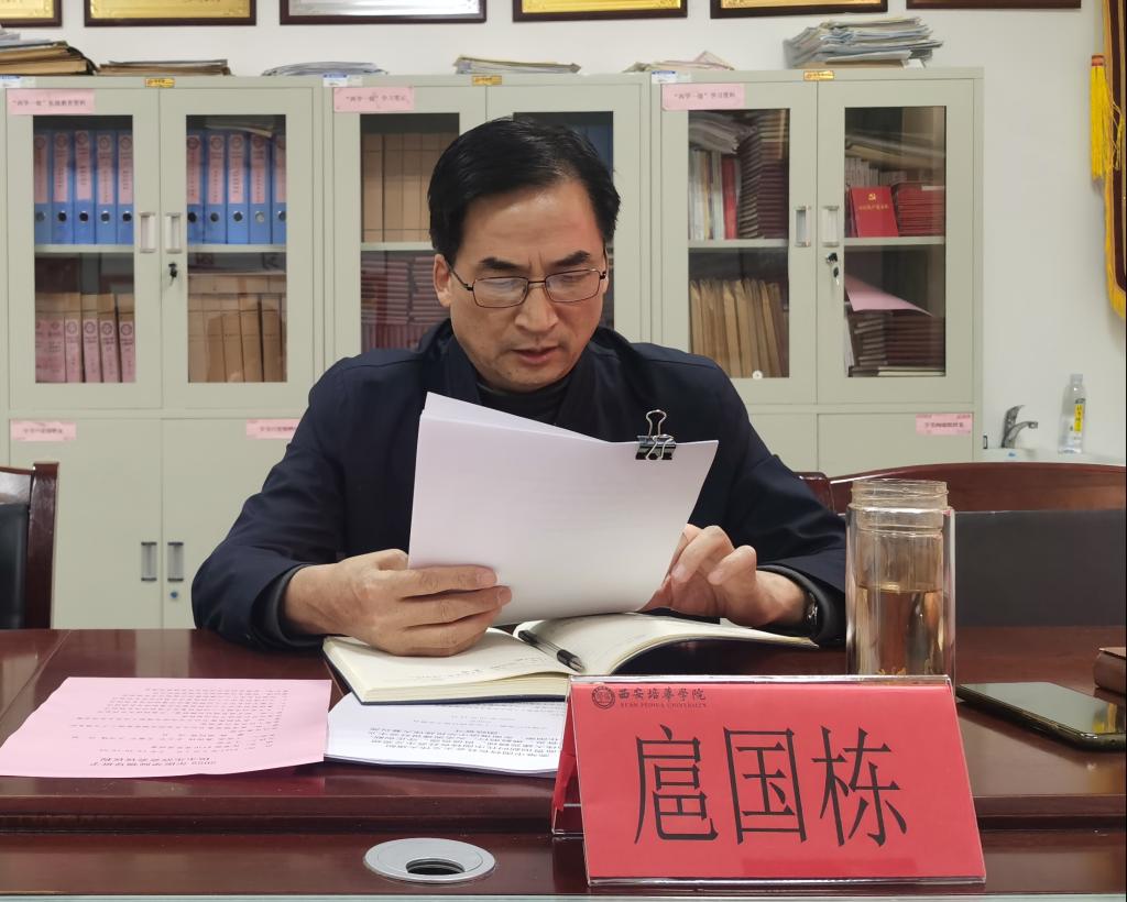 会议第一项,由学院党委书记王平安带领大家学习党的二十大报告。他指出,我们要原原本本、逐字逐句学习党的二十大报告和党章,学习习近平总书记在大会上的系列重要讲话和相关文件,在此基础上,同学习省第十四次党代会精神结合起来,联系教育工作的实际,做到学深悟透,深刻领悟“两个确立”的决定性意义,增强“四个意识”、坚定“四个自信”、做到“两个维护”,结合学院的教育教学,师资队伍建设、产学研建设、人才培养、学生管理等方面,助力学校的本科审核评建设。