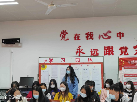 活动伊始,由学生干事冯莹老师代表发言,她带领在场师生共同学习《党的二十大报告学习问答》,进一步了掀起我院师生深入学习贯彻党的二十大精神浪潮。