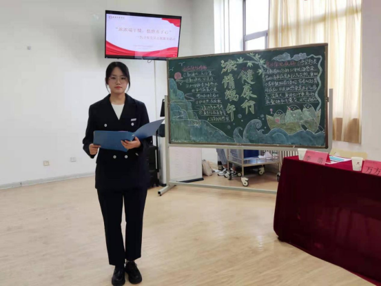 活动第一项,由主持人尚若楠介绍莅临嘉宾。莅临此次活动的嘉宾有医学院党委书记兼行政副院长王平安、党委副书记何丽、国家高级康复理疗师,国家一级讲师,针灸推拿专家原玮、周洋熙,党委组织委员万方芳,党委宣传委员李萌。