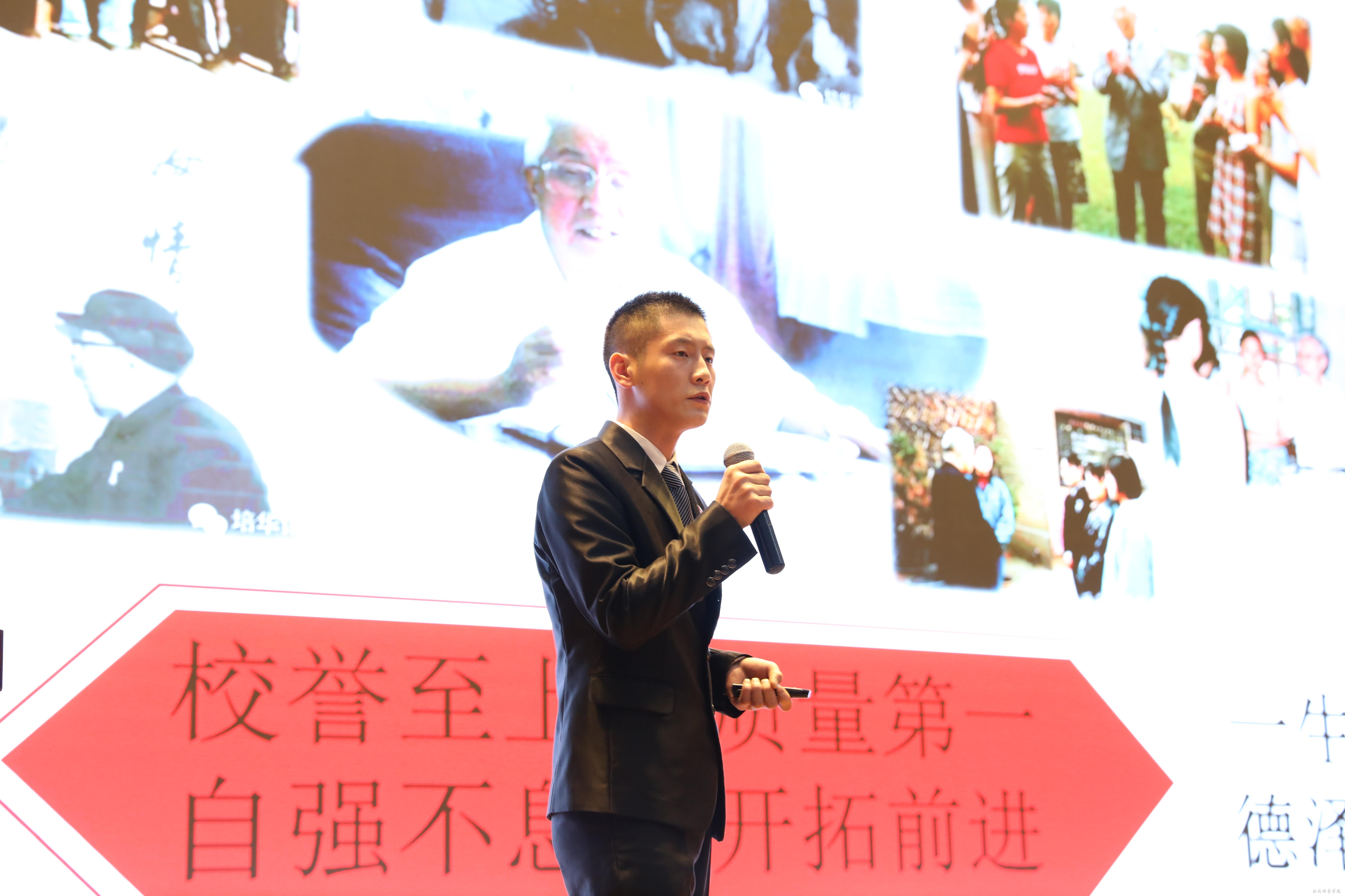 他围绕“维之精神”展开了关于该班如何创建”姜维之班”、如何提升班级凝聚力以及创建后班级所发生的一些改变做出了声情并茂的讲述,期间获得了阵阵掌声!