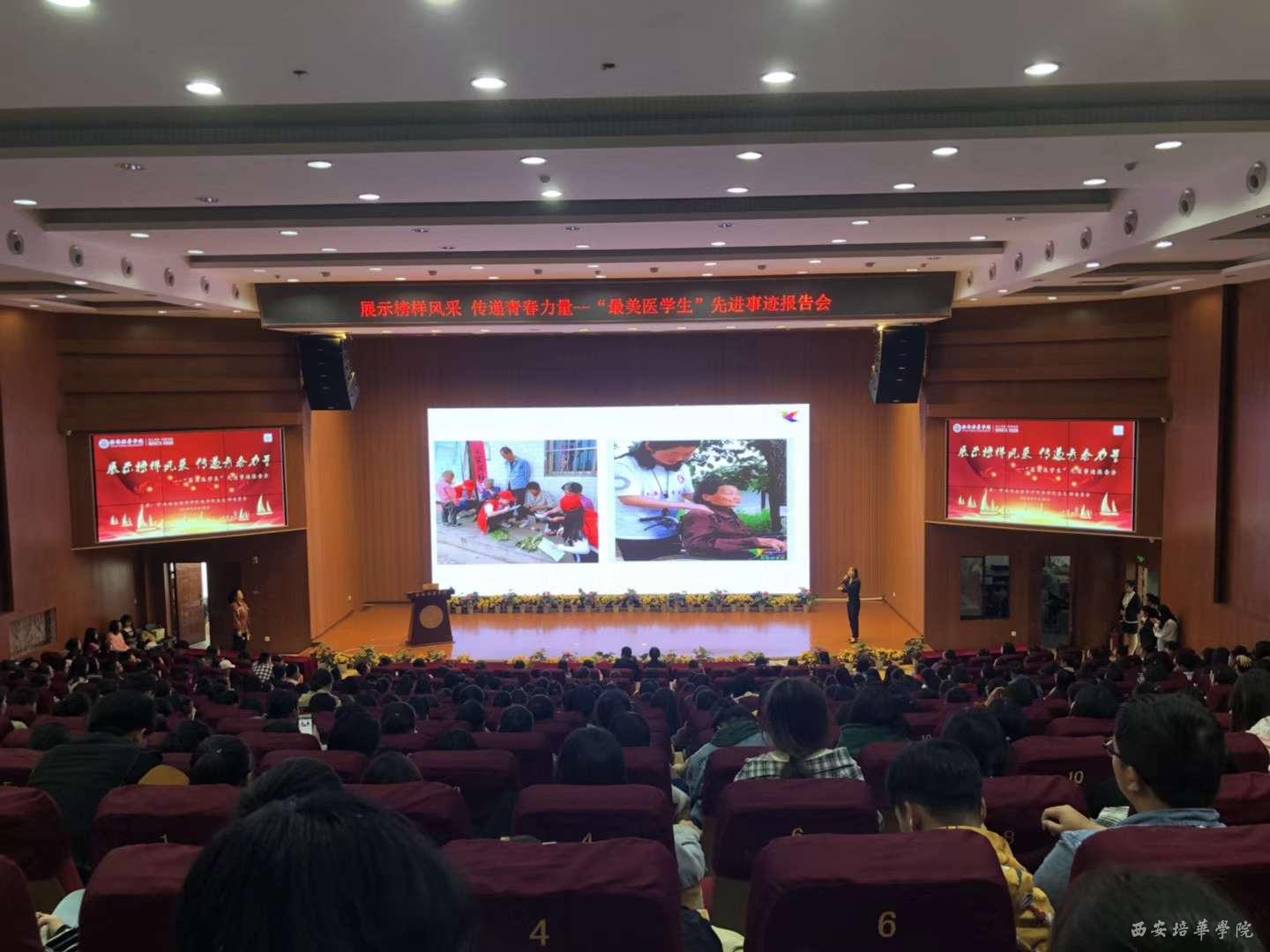 为贯彻落实习近平总书记对“弘扬爱国奋斗精神,建功立业新时代”做出的重要指示,根据中共中央组织部、中共中央宣传部关于在广大知识分子中深入开展“弘扬爱国奋斗精神、建功立业新时代”活动的通知,按照我省及各上级有关部门的会议指示精神,医学院党总支于9月28日在维之图书馆报告厅成功举办“展示榜样风采,传递青春力量”----最美医学生先进事迹报告会。此次报告会旨在传播社会主义核心价值观,挖掘我院优秀学生典型事迹,发挥典型人物的模范带头作用,以榜样的力量引领全院学生奋发进取。