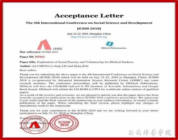 最后一位作报告的是发表了国际论文及申请了实用新型专利的“科研小达人”程就同学。她以2017年暑期“三下乡”的社会实践活动为背景,于2018年发表了题为《Exploration of Social Practice and Volunteering for Medical Students》的论文,并被CPCI检索。同时,她以护理基础实验课上的一个灵感为载体,发明了一项实用新型专利,此专利已被国家专利局受理。