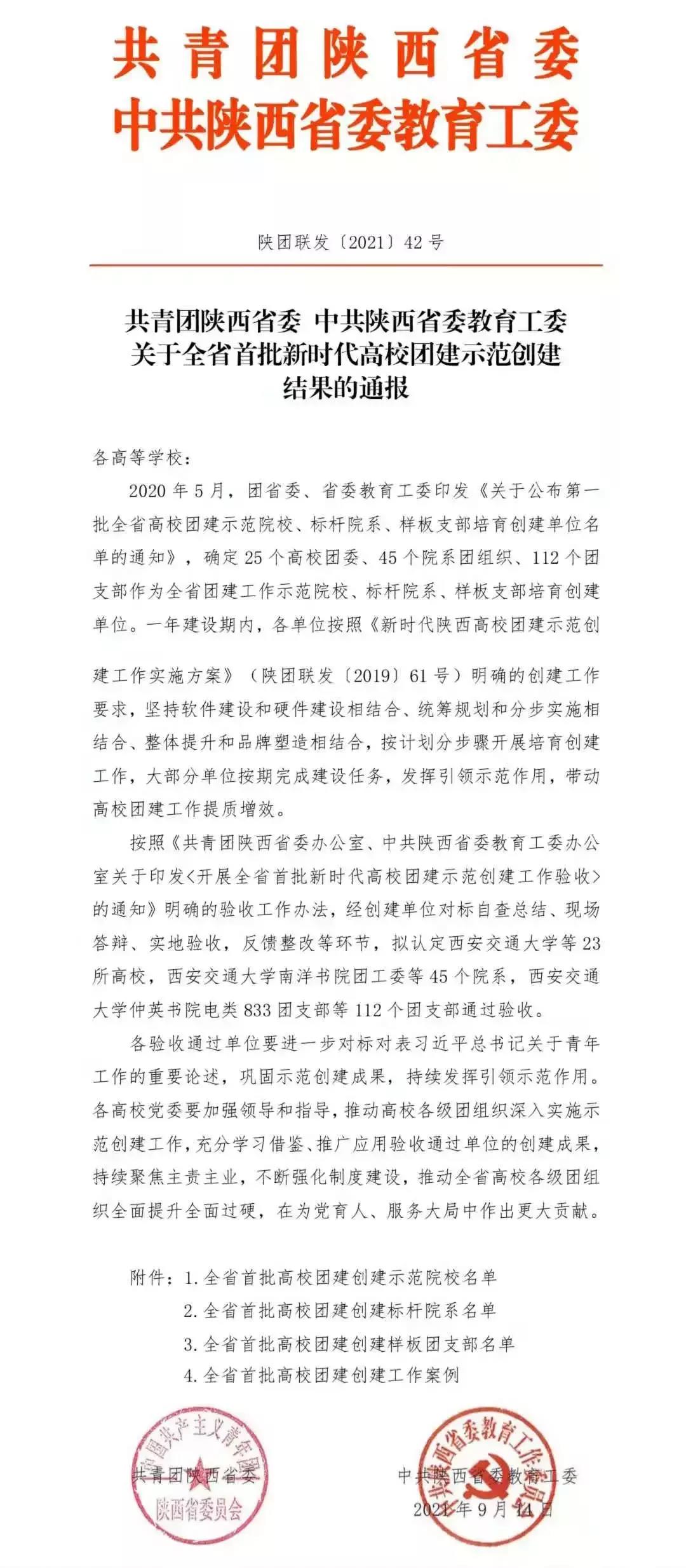 近日,由共青团陕西省委 中共陕西省教育工委发布的《关于全省首批新时代高校团建示范创建结果的通报》中,我校荣获“全省首批高校团建工作示范院校”称号,西安培华学院医学院37B11709团支部荣获“全省首批高校团建工作样板团支部”称号!