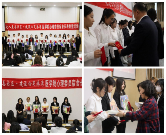 对“走入至善社区,建设心灵港湾”活动中表现优异的宿舍、宿舍长、心理委员进行表彰,对获奖学生表示祝贺,同时希望学生踊跃参与学院潜能发展辅导站的活动。吕改莲老师、何丽副书记和史立军院长为本次获奖学生颁发荣誉证书,希望同学们可以感染带动身边的人,让更多的人积极参与进来,丰富校园生活。