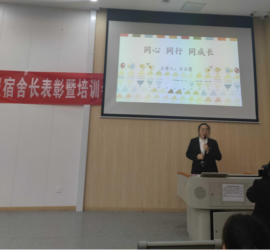吴晓青老师从学生公寓文明行为规范、学生公寓管理办法、以及“五无五好”宿舍创建三个方面给宿舍长进行培训。并对社区宿舍长进行培训,明确舍长责任,进一步引导宿舍长树立高度的安全责任意识,建立良好的宿舍文化氛围,发挥优秀的榜样示范作用。