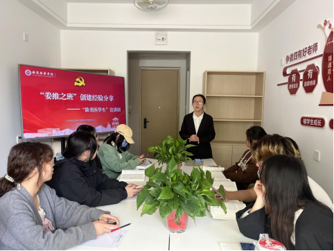 为进一步推动“姜维之班”创建深入开展,扩大“姜维之班”创建范围,深化“姜维之班”创建影响,进一步培育和践行社会主义核心价值观,4月8日医学院党委在至善社区7号公寓导师工作室开展“姜维之班”创建经验分享交流会,特邀校级“姜维之班”创建优秀班级护理学2101班代表邱婉莹同学为大家做分享,此次活动由医学院党务干事冯贝老师主持。