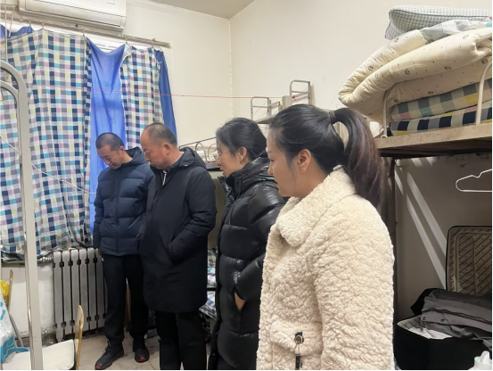 此次安全排查在医学院党委书记兼行政副院长史立军、党委副书记何丽的带领下,2024届毕业班全体辅导员共同深入学生宿舍进行全面细致的检查。老师们重点检查了宿舍内的电器设备、私拉乱接电线、具有安全隐患的设施以及其他违规现象,并走访了解毕业生实习就业情况,进行答疑解惑。