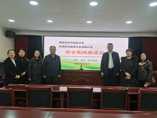 2023年3月28日,我院根据《西安培华学院书记校长访企拓岗促就业专项行动实施方案》的文件要求,党委书记兼行政副院长王平安、药学系主任方欢乐、教学干事杨静、药学系教师牛睿带领我院学生走访了陕西药王故里秦艾产业集团有限公司。