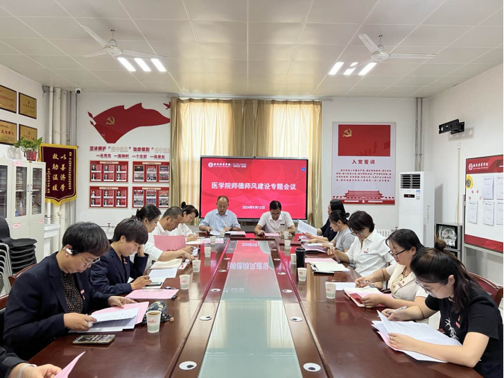为深入学习贯彻习近平总书记在全国教育大会上的讲话精神,实施教育家精神铸魂强师行动,深化立德树人教育理念,切实加强学院教师队伍师德师风建设,2024年9月12日,医学院组织开展“明师德 铸师魂 守初心 担使命”师德师风专题教育学习活动,医学院院长扈国栋、党委书记兼行政副院长史立军、学院党委委员、全体党支部书记(副书 记)、教师代表、党务干事参加会议。会议由医学院党委书记兼行政副院长史立军主持。