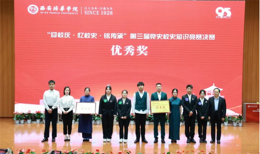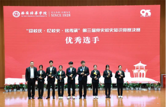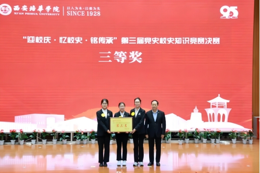为深入学习贯彻习近平新时代中国特色社会主义思想,推动党史学习教育常态化、长效化,庆祝培华建校95周年,弘扬校史文化,传承培华精神,进一步激发培华师生爱党、爱国、爱校的热情。11月3日,西安培华学院“迎校庆、忆校史、铭传承”第三届党史校史知识竞赛在图书馆报告厅举行,理事长姜波博士,校长李映方教授,常务副校长胡俊生教授,党委副书记徐国富教授及各二级学院党委书记、副书记,直属党支部书记、师生代表400余人观看了比赛。