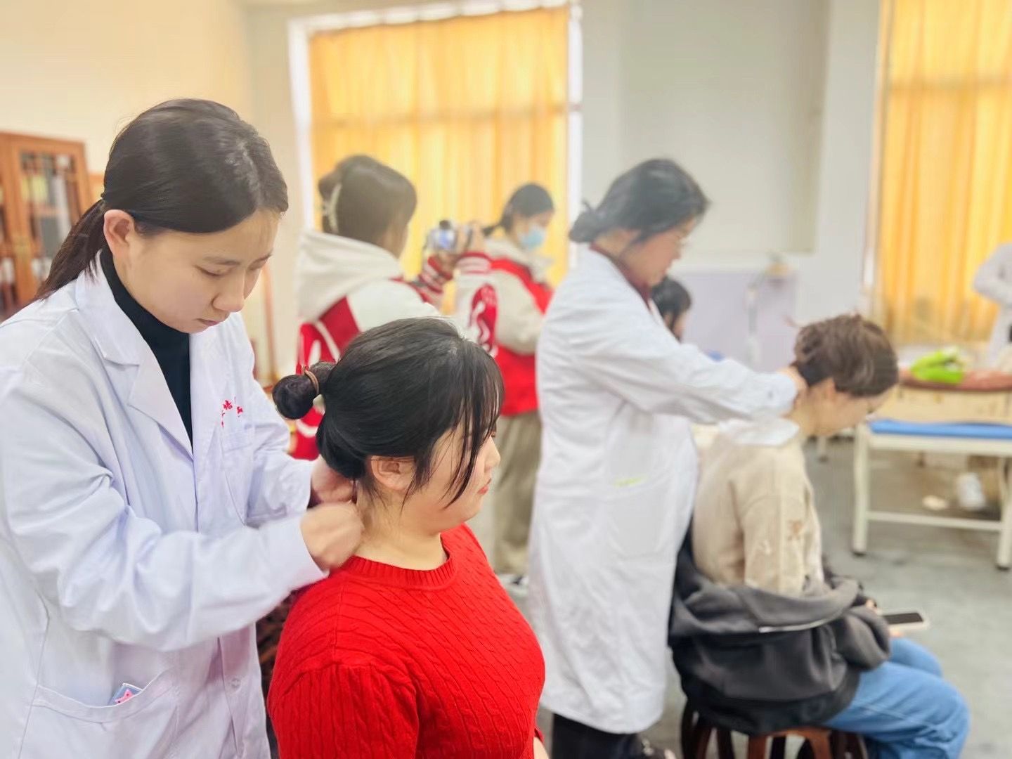 医学院青年志愿者协会举办“健康义诊暖人心”妇女节义诊活动,邀请全校师生前来体验推拿、艾灸、按摩等项目。志愿者们的手法娴熟、力道适中,让参与的师生们感受到了舒适和放松。活动不仅传递了关爱与温暖,更展现了至善社区和谐、友善的氛围。