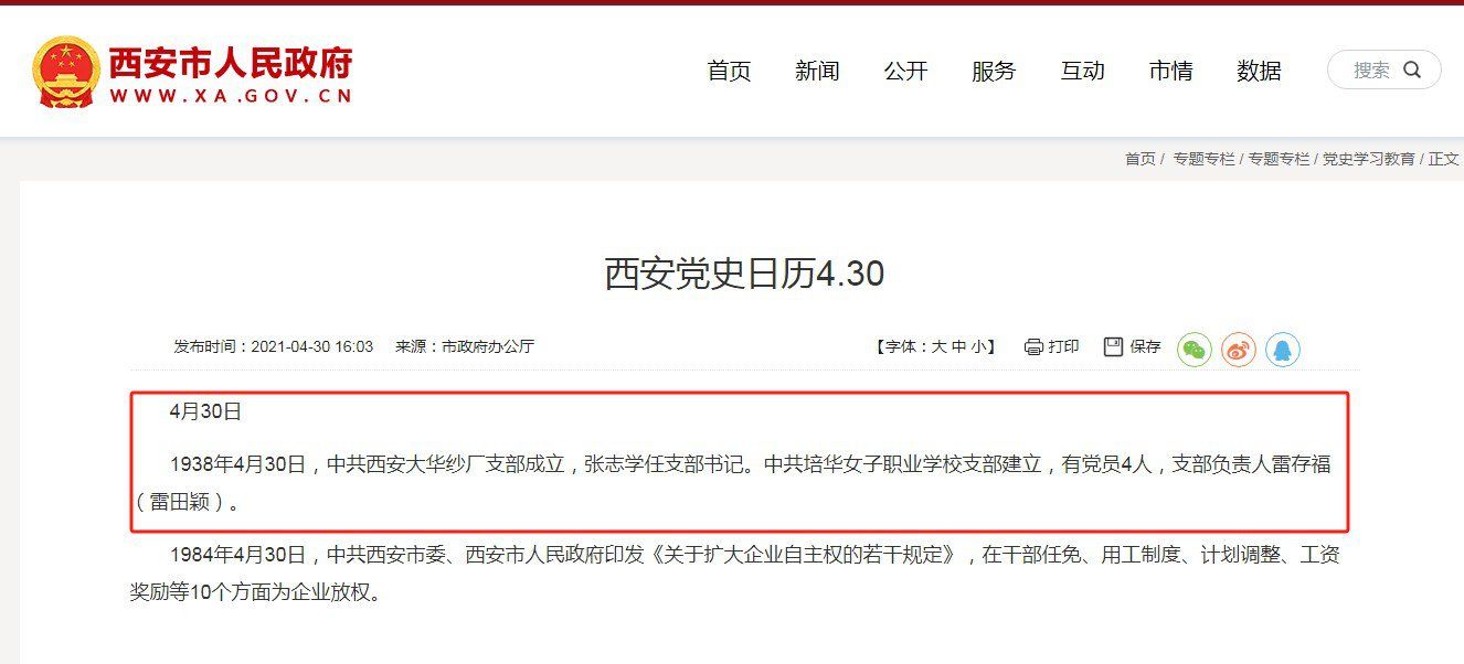 西师简师 28 级的学生党员胡俊生在 1938 年 4 月发展雷存福(雷田颖)加入了中国共产党。据西安党史研究办公室整理的西安党史日历显示,1938 年 4 月 30 日,中共培华女子职业学校支部建立,有党员4人,支部负责人雷存福(雷田颖)。正是胡俊生积极开展党员发展工作,不但让培华女职多了一名中共党员,还成立了党组织,为培华播散革命火种做出了重要贡献。
