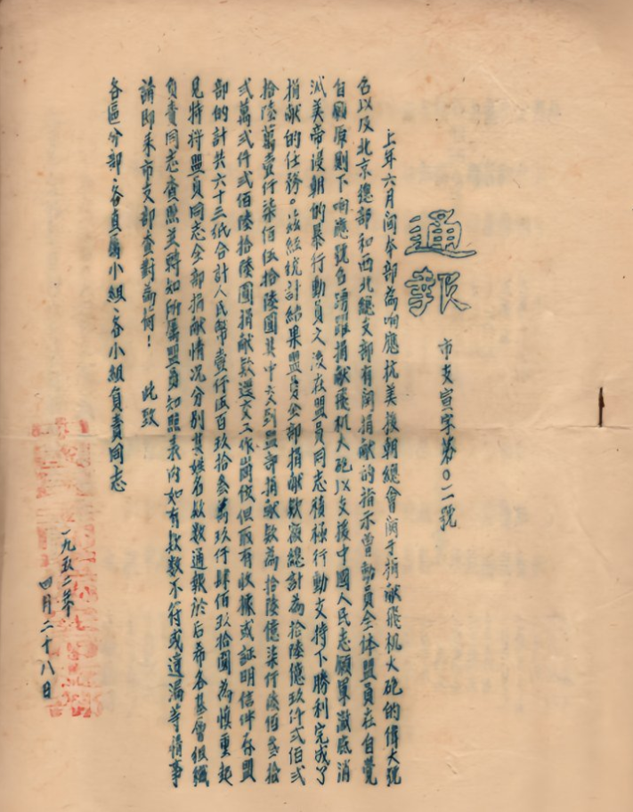 培华人始终以国家的利益为重,每逢国家遇到困难时,培华人始终以“吾之微光映大国之辉煌”的远大志向,以“位卑未敢忘忧国”的博大胸怀,以“天下兴亡、匹夫有责”的担当精神与高度责任感,为保卫祖国的和平与安宁慷慨解囊,竭尽所能奉献绵薄之力,将个人力量汇聚成奔腾的洪流。1952年4月28日,在一份《中国民主同盟西安市支部盟员同志全部捐献明细表(1952年 抗美援朝)》中记载,通过查捐献明细表,学校多位民盟教师响应号召参加捐赠。时任副校长姜维之(同时是西安私立培华财经学校民盟组织负责人)捐款十二万元(10000元旧币等于1元新币,下同),教师郭光祖十一万六千元、朱承俊七万五千元、李守纯五万元、唐戴琴四万元、李冠勇三万元、潘鸿治2万元等等。时任西北财专校长后任西安市财经学校校长的冯希勃捐款贰仟零九万元(冯希勃家境优渥、家庭富有,其父亲是杨虎城十七路军军长冯钦哉,为北平和平解放做出过贡献),时任副校长后任西安市财经学校教师的聂尚宣捐款二十二万元。培华董事石雨琴、梁午峰捐款十五万元,原培华财校代校长鲍廷忱捐款十五万元(鲍廷忱1951年9月根据民盟西安支部安排到西北人民革命大学学习,学校工作由副校长姜维之主持)。学校民盟组织按照上级组织号召,在国家抗美援朝期间,积极组织教职工捐钱捐物、支援抗美援朝、保家卫国,体现的不仅仅是学校民盟组织的政治觉悟,更体现学校教职员工对国家和民族的浓浓之情、拳拳之心。
