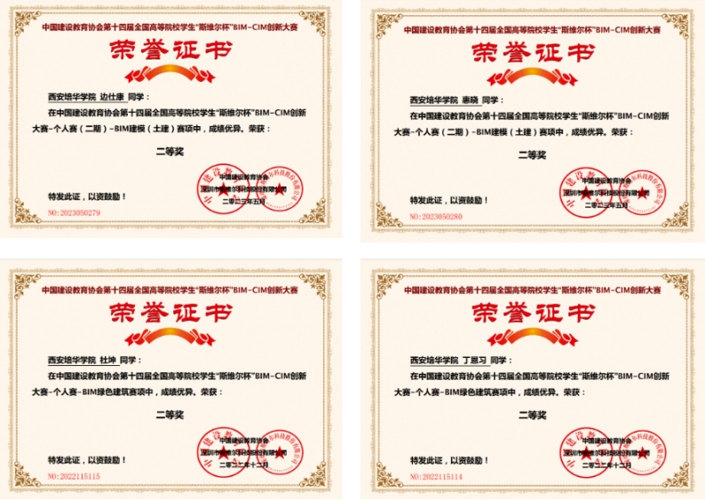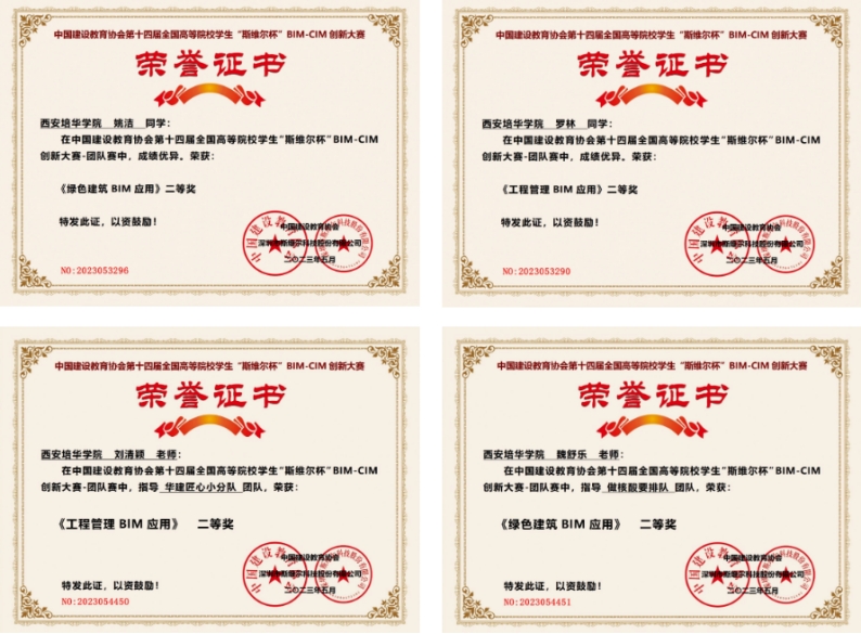 本次大赛设置个人赛、团队赛两个赛道,其中个人赛分BIM建模、BIM绿色建筑、装配式建筑、建筑碳排放四个项目,团队赛分正向一体化BIM-CIM应用、绿色建筑BIM应用、工程造价BIM应用、工程管理BIM应用、建筑碳排放应用五个专项。培华学子在比赛中展现出扎实的理论知识和娴熟的专业技能,最终取得了优异成绩。