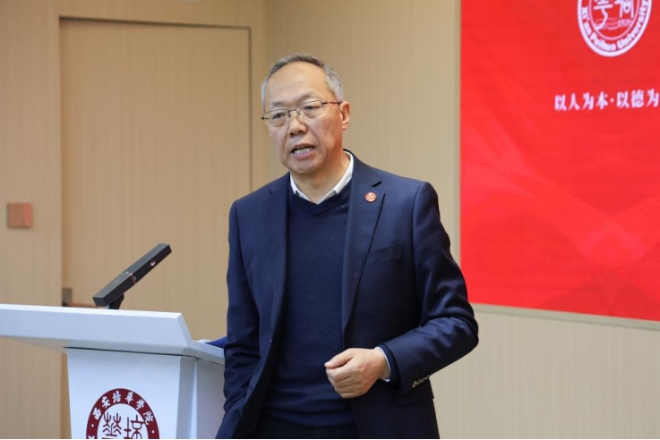 智能科学与工程学院院长王文庆围绕“对新专业设置与学科建设的思考”,分享了学院在新工科建设背景下的探索与实践。他指出,面对人工智能、大数据等新兴技术的快速发展,学院将提前布局,加强跨学科交叉融合,构建适应未来技术发展的学科体系,培养具有国际视野和创新能力的高素质人才。