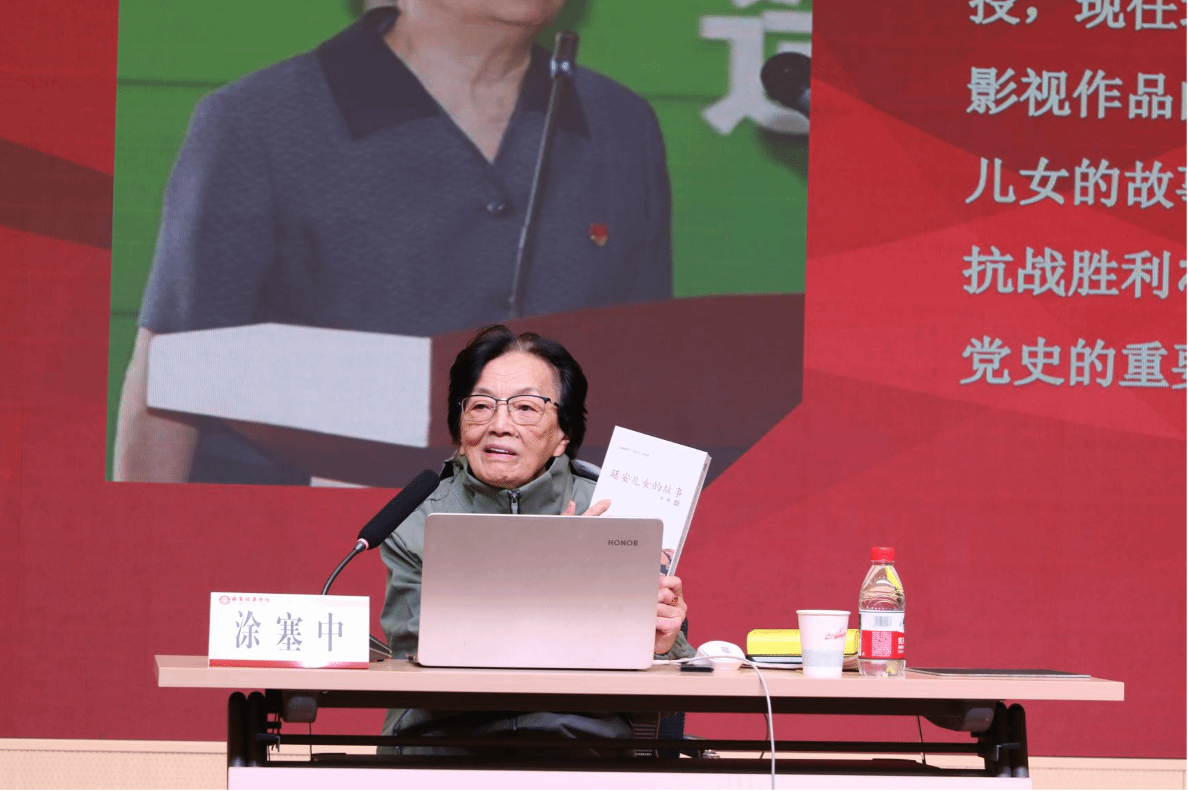 在主题宣讲环节,涂塞中教授以“延安儿女的故事”为题,作了一场感人至深、发人深省的分享。她将自身在革命环境中成长的珍贵记忆,与参与创作《延安儿女的故事》音像制品的艰辛历程娓娓道来,通过大量鲜活案例,深刻诠释了延安儿女如何在民族危亡的艰苦卓绝中,将个人命运与国家前途紧密相连,展现了他们矢志不渝的革命信念与淳厚绵长的红色家风。