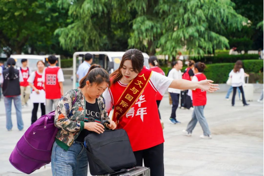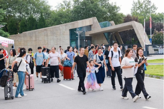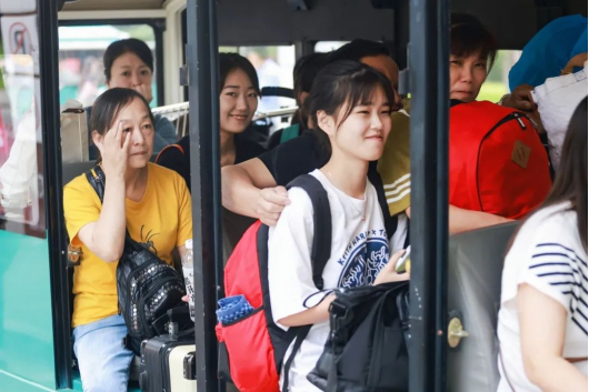 亲人们肩挑手扛,走进孩子们心仪的大学。不舍的话语藏在眼中,是担心,更是欣慰。