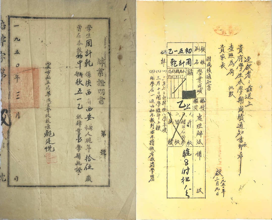 学校还十分注重家校协同联动。及时把学生在校表现和学习成绩反馈给家长,保障家校信息交流及时有效、对称。从党委宣传部收寻到的一份学生肄业证明书就可以看出来。学校1950年3月在给学生周计乾(陕西省西安市人,时年15岁,是学校初中部秋五一乙级学生)颁发了一学期肄业证明书外,还附发了一份成绩通知书。原文如下“兹送上:贵府学生本学期成绩通知书一份,即希查照为荷。此致,贵家长”。成绩通知书详细记载了该生的学业成绩、品行鉴定(乙上),记录了处理办法(升学),被注栏中注明了因迟到被扣1分。同时,该成绩单还就办理入学手续的时间学上课的时间、逾期不报到处理等进行了说明。让家长通过本成绩通知书全面了解学校相关信息,进一步加强了家校联动。这个做法得到了家长的好评,学校的生源充足、声誉很好,在古城西安人民心目中形成了很大的影响力。